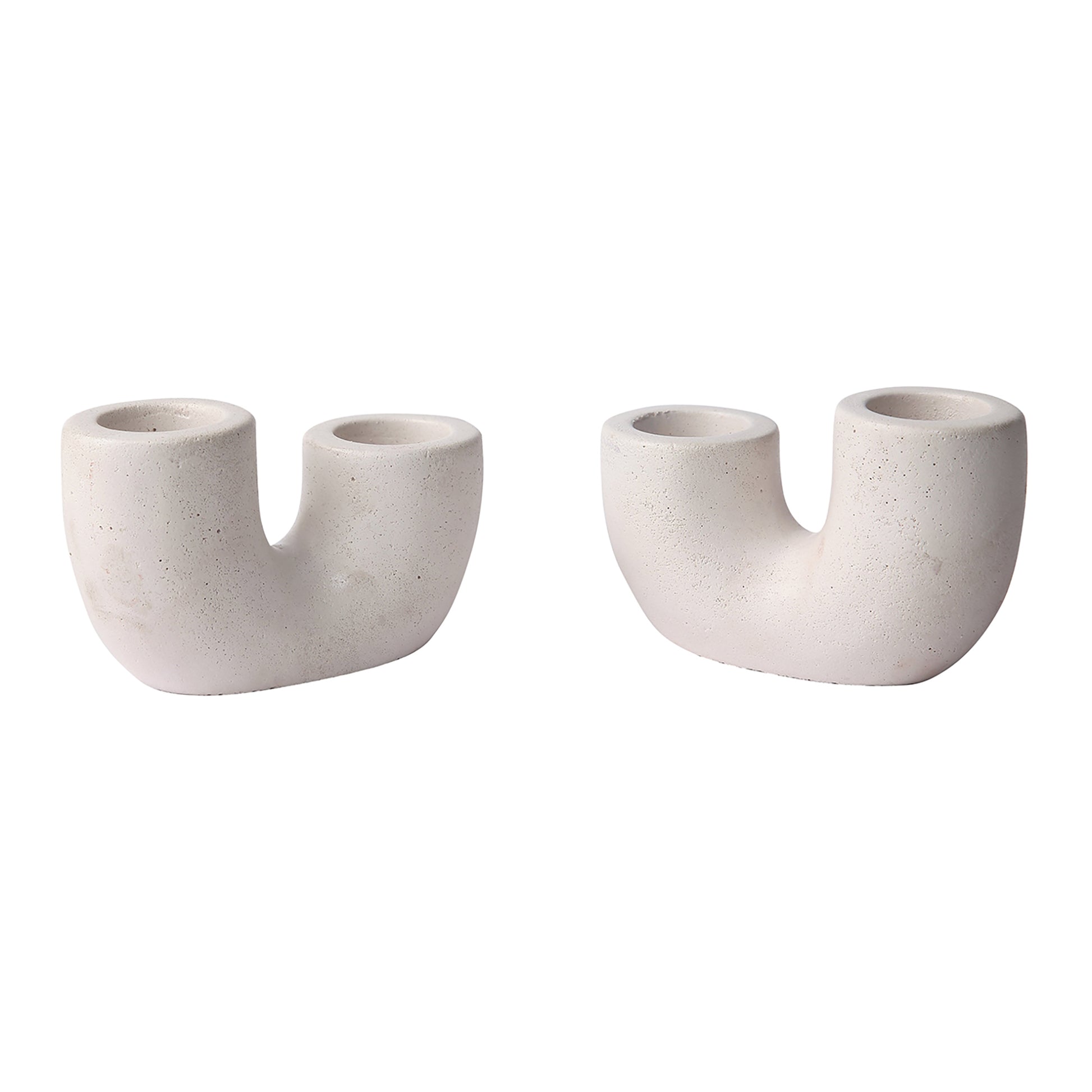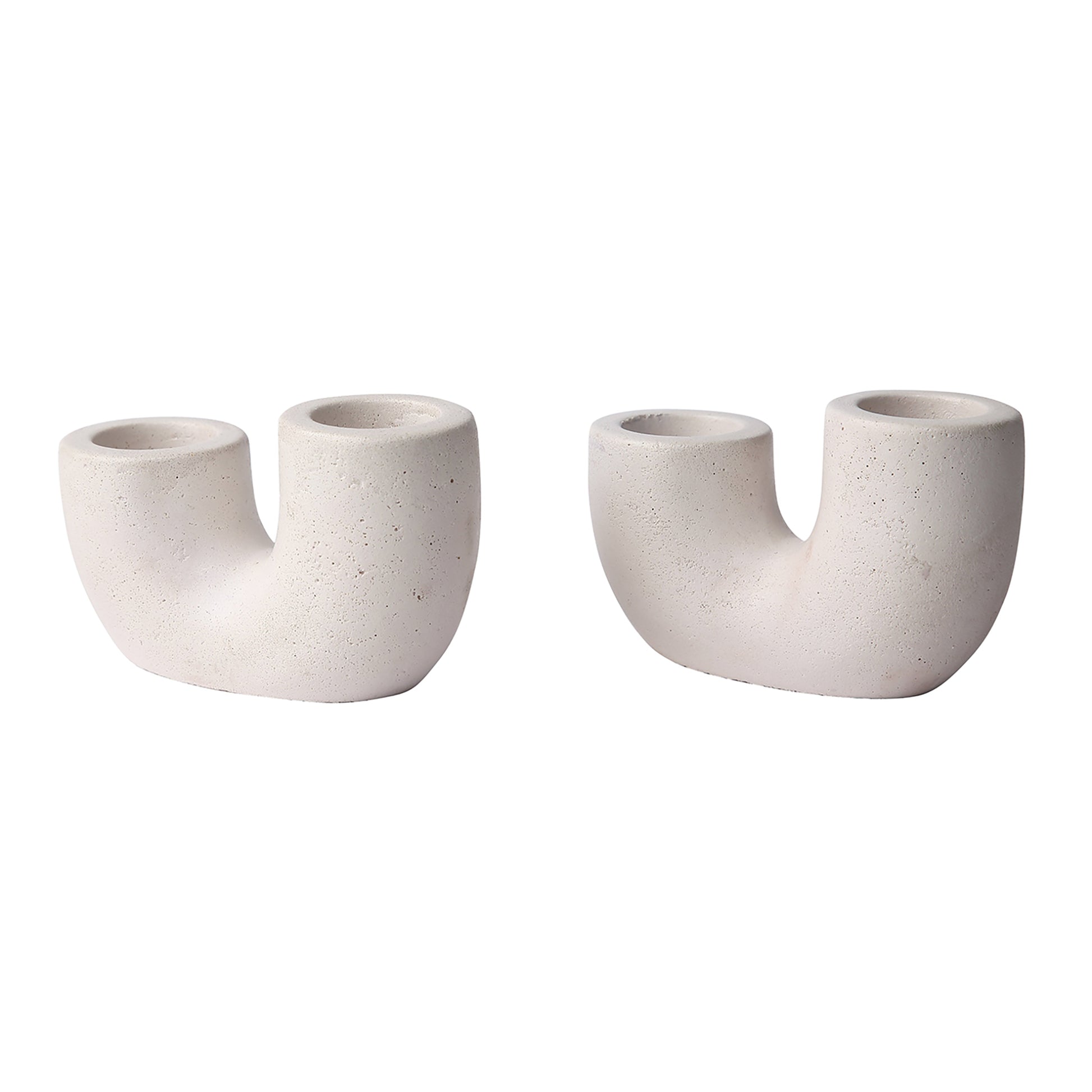 Nordic U-Shaped Concrete Candle Holder | Set of 2 | Ivory