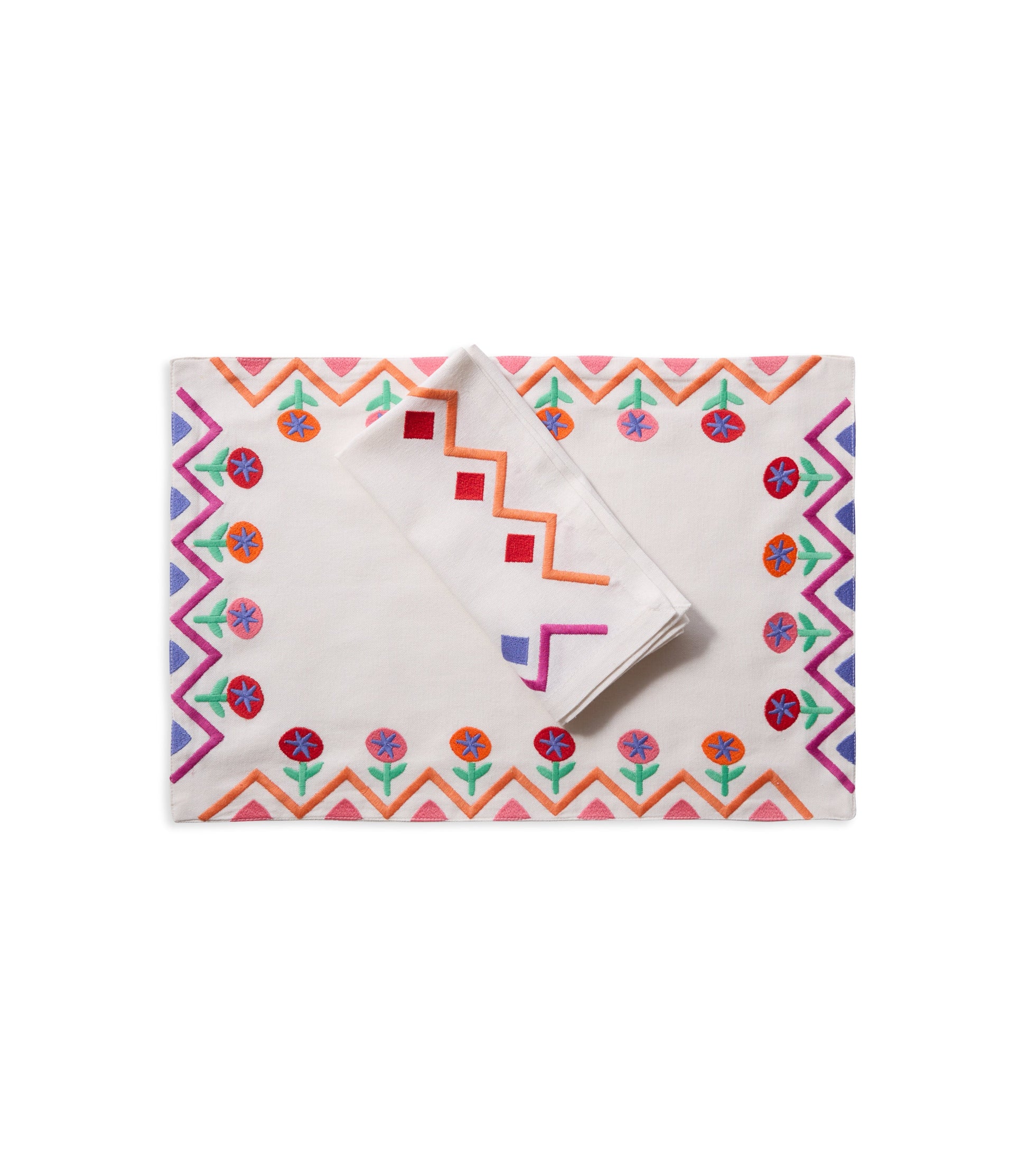 Add an instant mood boost to your table with our Tropical ZigZag Napkin Set. Made from soft, durable cotton and detailed with an embroidered geometric border, each napkin captures the carefree spirit of sunny escapes and lively gatherings. Whether you’re setting the table for brunch or dressing up a dinner party, these napkins bring color, texture, and a touch of joy to every meal.